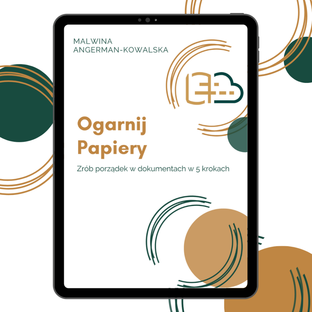 Z kolei mój pierwszy produkt, e-book “Ogarnij papiery. Zrób porządek w dokumentach w 5 krokach” powstał w odpowiedzi na wiele pytań, które dostawałam za pośrednictwem social media od osób prywatnych. Każdy z nas posiada dokumenty, nie mam co do tego wątpliwości. Często przechowujemy je w szufladach, kartonach, nie do końca mając świadomość po co? Postanowiłam przygotować krótki poradnik, w formie workbooka, z którym każdy z nas będzie mógł uporządkować swoje dokumenty w 5 krokach.