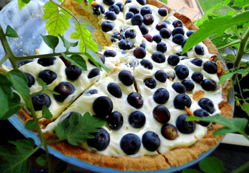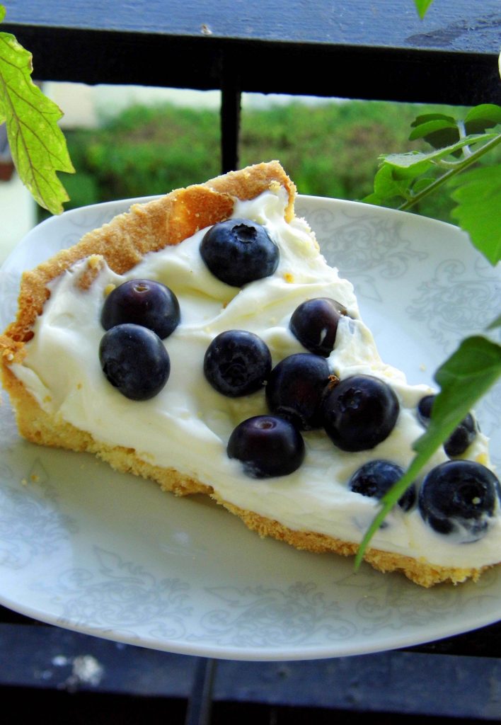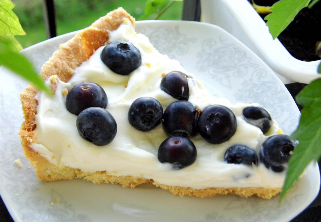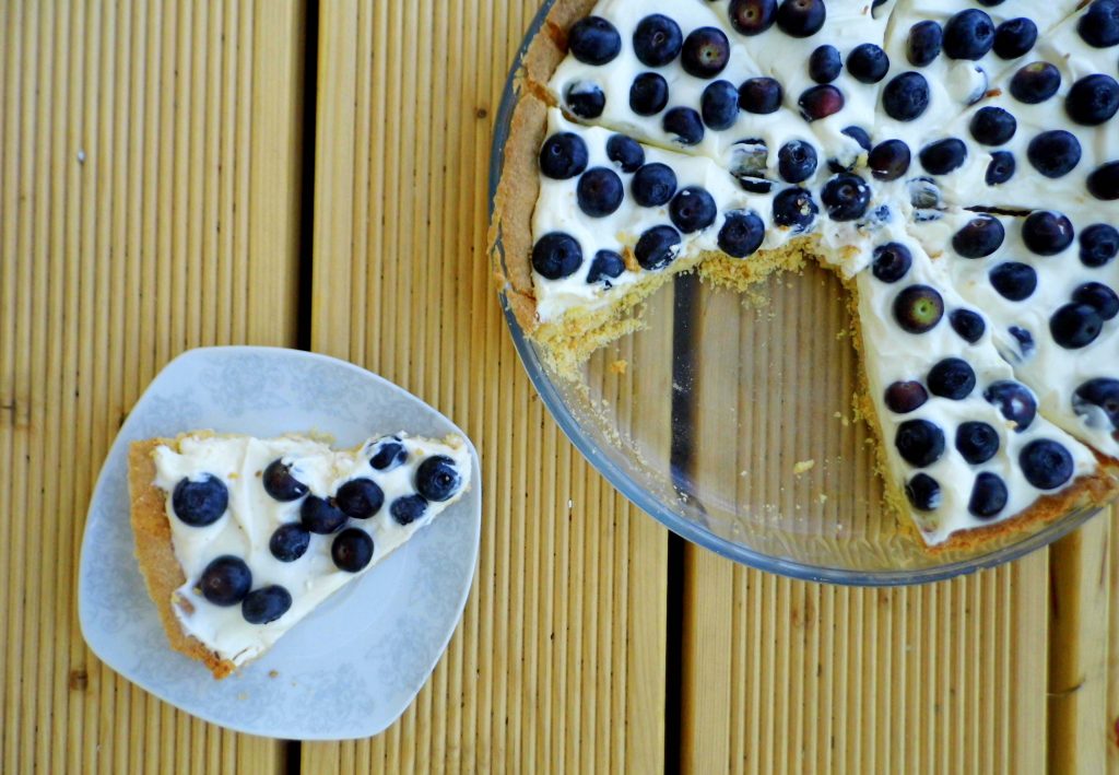 Na zimny spód wykładamy masę i borówki. Przechowujemy w lodówce.