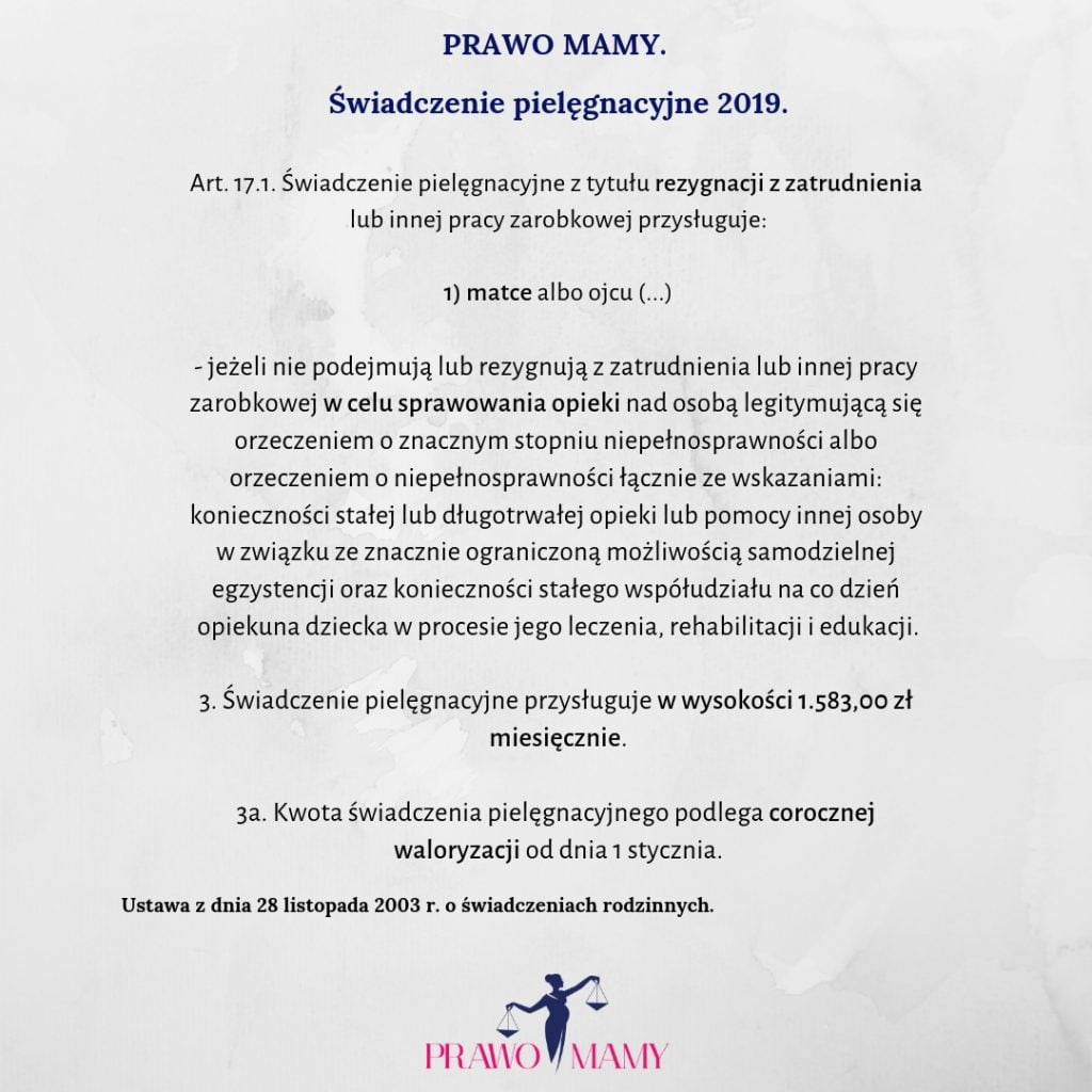 Wysokość świadczenia pielęgnacyjnego w 2019 r. ?
