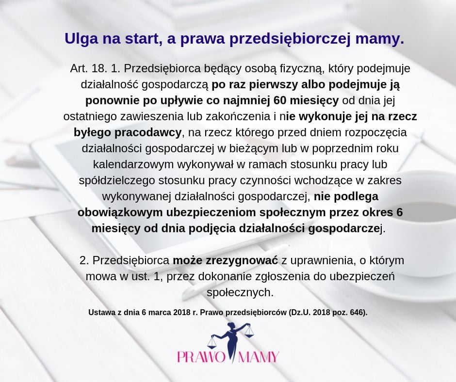 Ulga na start, a prawa przedsiębiorczej kobiety, która jest mamą.
